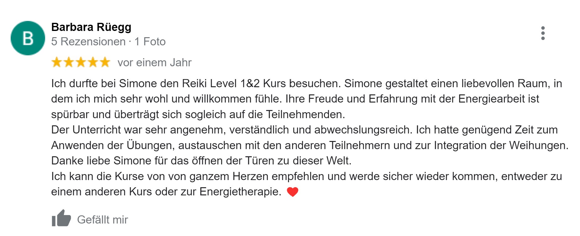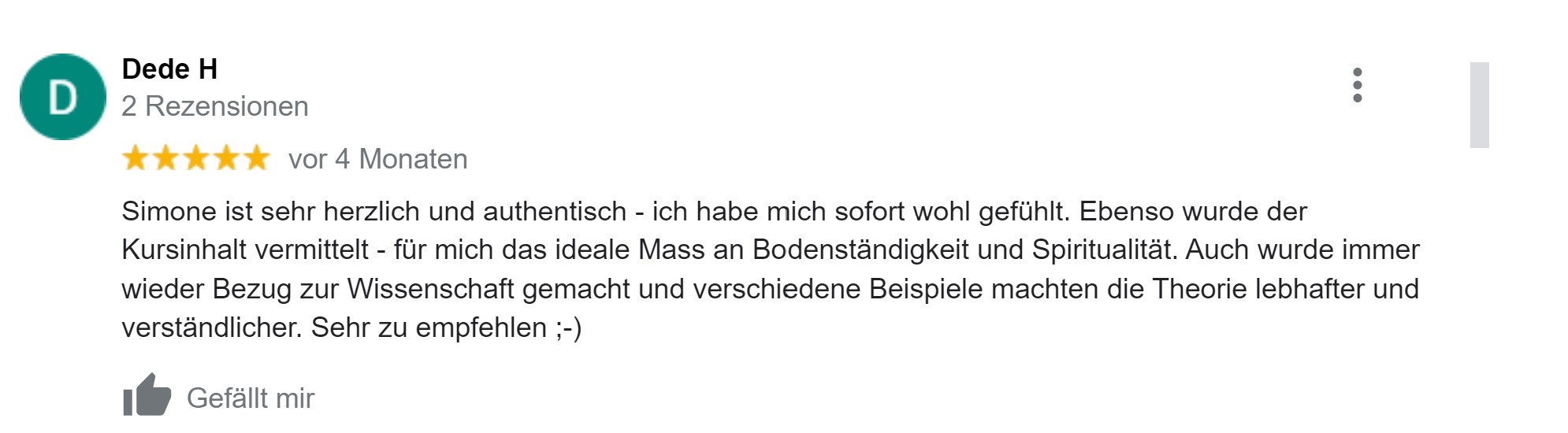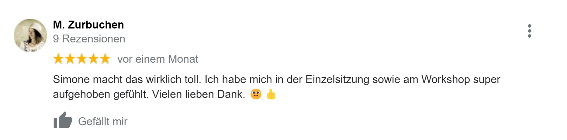 Simone‘s Energiemassage war einfach traumhaft und tiefenentspannend, top und absolut empfehlenswert!! Ich komme wieder! Nochmals DANKE!